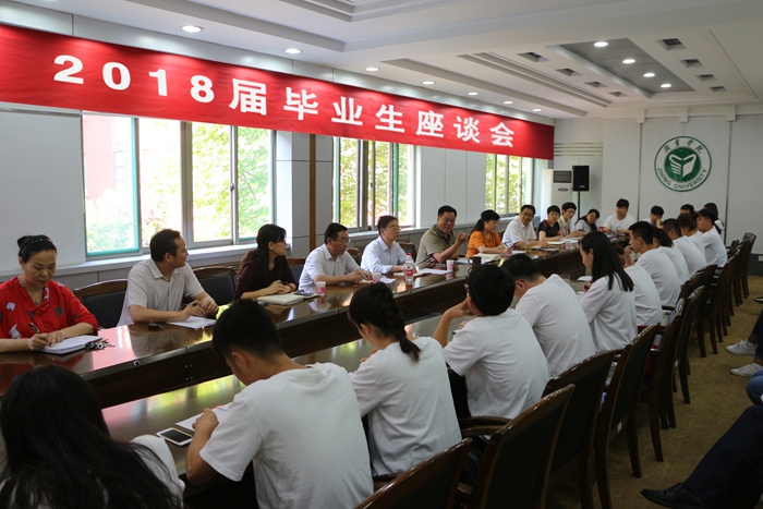 5月31日下午,我校在行政楼A221会议室召开2018届毕业生代表座谈会。党委副书记、院长吕灵昌,党委委员、副院长王旭英出席会议。学生工作处(武装部)、教务处、招生与就业处、安全保卫处、后勤处、图书馆、团委等相关职能部门负责人及2018届毕业生代表参加了会议。