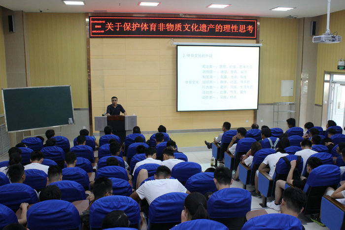 济宁市各县市区15支非遗传统体育代表队130余人进行了陈氏太极拳、兖州查拳、梁山少林拳、扑拉袖拳、岳王拳等技艺的精彩展演,展现了传统体育的无穷魅力和博大精深。下午,非遗传统体育传承人及成员分别走进10个教学班,开展了系列相关教学活动。6月7日,杭州师范大学硕士生导师、曹守和教授,山东师范大学硕士生导师、孙刚博士,分别为我校师生作了“关于保护体育非物质文化遗产的理性思考”、“非遗武术的时代价值与发展愿景”的专场学术报告。
