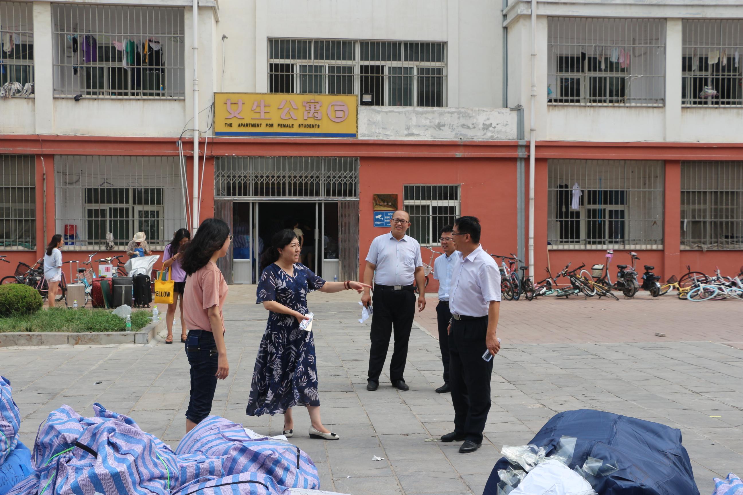 上午,学校党委委员、副院长王旭英在学生工作处(武装部)处长(部长)夏可树的陪同下,深入学生公寓检查指导宿舍搬迁工作。