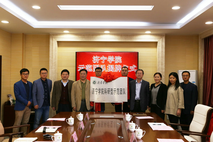 刘德胜宣布济宁学院科研型示范团队、技术应用型示范团队成立并致辞。他指出,学校成立科研型示范团队和应用技术型示范团队,是我校科研长足发展的必然趋势和必由之路,是学校深入实施人才强校战略,落实各项人才政策,提升服务社会能力的体现,必将对我校学科融合与创新,培养高水平人才,促进我校与国内外大学、企业的交流与合作,提高学校的学术声誉与影响力,对我校科技创新体系的构建起到积极推动作用。刘德胜就如何做好团队建设提了五点要求:一是示范团队建设要围绕学校学科发展战略目标、学科规划和经济社会的需要,明确研究方向和发展目标;二是团队负责人要具有战略眼光和很强的协调能力,使整个团队和谐地运行、快速地发展;三是要构建适度的人员规模、合理的队伍结构,形成团结协作的机制和追求创新的氛围,力避单打独斗;四是要建立科学合理的考核、评价、激励政策,奖惩分明;五是作为科研组织模式改革的重要探索,要提倡构建多元化的团队组织模式,提倡多学科交叉融合,采取多种灵活方式建设团队,希望示范团队发挥科技领头雁的作用,促进高水平成果产出,提升学科水平,推动学校转型发展。