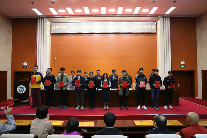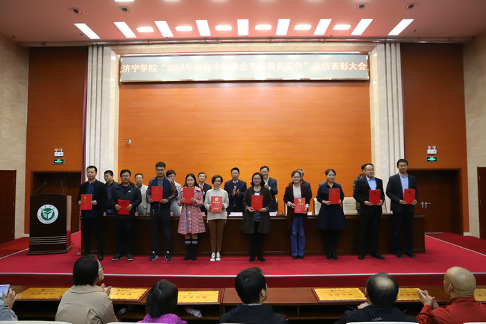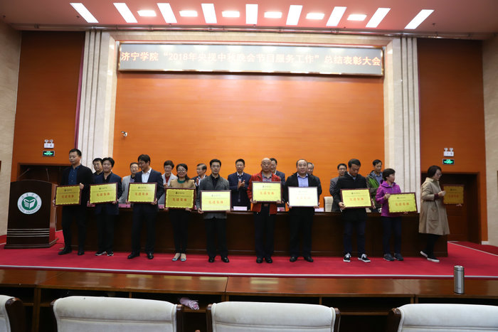 会上,党委(院长)办公室主任、学校节目服务工作领导小组成员李凡路宣读《济宁学院关于表彰2018年中央广播电视总台中秋晚会节目服务工作先进单位和先进个人的决定》,授予音乐系等20个单位“节目服务工作先进单位”称号,授予袁芬等88名老师“节目服务工作特殊贡献奖”称号,授予荣倩等1793名学生“节目服务工作优秀学生”称号。先进单位代表、音乐系主任葛修路,特殊贡献教师代表、经济与管理系袁芬,优秀学生代表、中文系学生李晓辉先后作了发言,饱含感情地讲述了参与央视秋晚的动人事迹,真切表达了乘着东风再出发的信心和决心。