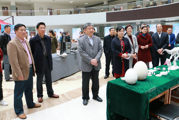 11月5日上午,由校团委主办的“新动能·创青春”大学生创新创业成果展在图书馆二楼大厅举行。校党委书记郁章玉、院长吕灵昌、党委副书记马恩、副院长王旭英莅临指导,党委宣传部、发展规划处、教务处、招生与就业指导处、团委等负责同志、各系团总支负责人共同观看展览。