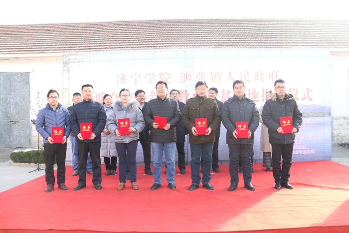 揭牌仪式上,赵洁和韩光辉代表双方签订了战略合作协议,曾宪文和孔繁华共同为济宁学院教育扶贫基地揭牌,韩光辉向济宁学院7名教师颁发了科技扶贫专家证书。