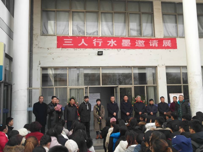 12月26日,三人行·燕一群、张承兵、丰伟水墨邀请展在我校美术系举办。校党委副书记马恩,济宁市孔孟书画院书记、院长郑志群、副院长王德亮,曲阜市杏坛中学校长胡滨,曲阜市书画家协会主席韩益、副主席孔祥民,辅仁书画院院长孔令伟等著名书画家,系党总支书记杨晓青、主任褚滨及相关专业师生出席活动。