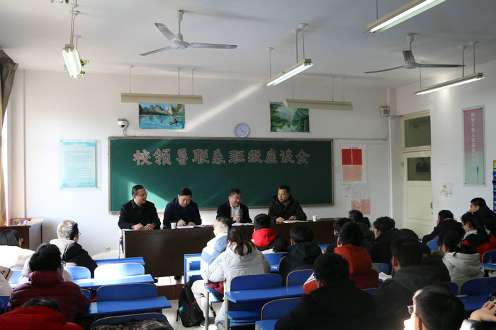 座谈中,郁章玉书记首先向同学们表达了亲切问候,和蔼可亲的话语平易近人的情怀瞬间拉近了与同学们的距离,接着,他与大家分享了联系班级的感想及当老师的感受,关切地问同学们现在是否已经适应了我校的学习生活,语重心长的交流中无不体现出慈父般长者对晚辈的关心关怀。之后,郁章玉书记围绕对十九大精神、庆祝改革开放四十周年大会精神以及全国教育大会精神、全省教育大会精神的学习,以《青年学子要自觉坚持德智体美劳全面发展 努力成长为新时代中国特色社会主义事业的合格建设者和可靠接班人》为题,密切结合同学们的学习、生活、思想、体育锻炼等重点解读了习近平总书记重要讲话中“六个下功夫”的深刻内涵。他引经据典、风趣幽默,谆谆教导像讲故事一样娓娓道来,同学们听得入神入心,深受教育,倍感鼓舞,受益匪浅。在互动交流环节,同学们普遍认为开展校领导联系班级工作很有必要,今天召开对接座谈会同样很有必要。同学们对学校学习场所、补助资助、医疗保健、传统文化传承等问题提出了意见建议。针对同学们提出的意见和建议,郁章玉书记作了一一答复。