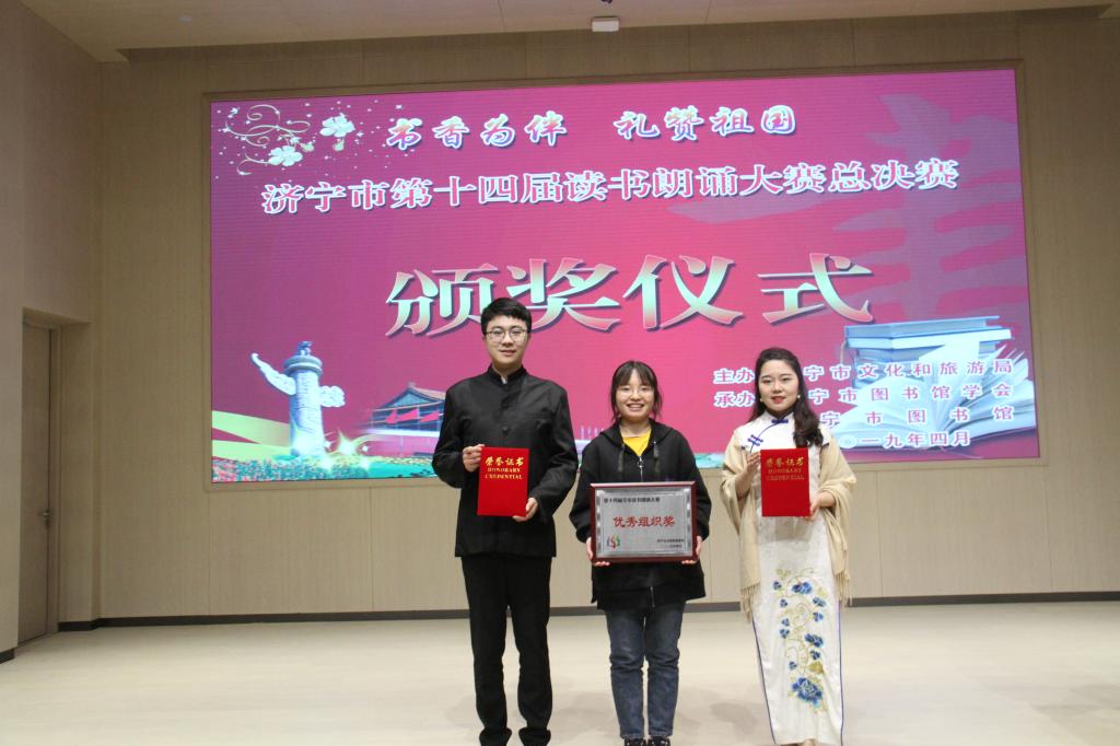 经过层层选拔,来自济宁市各县区和驻济高校的20组选手参加了总决赛,共决出3个一等奖、6个二等奖、11个三等奖。我校图书馆推送的选手经济与管理系张日新、中文系潘亚欣代表学校参加了比赛,并勇夺一等奖。