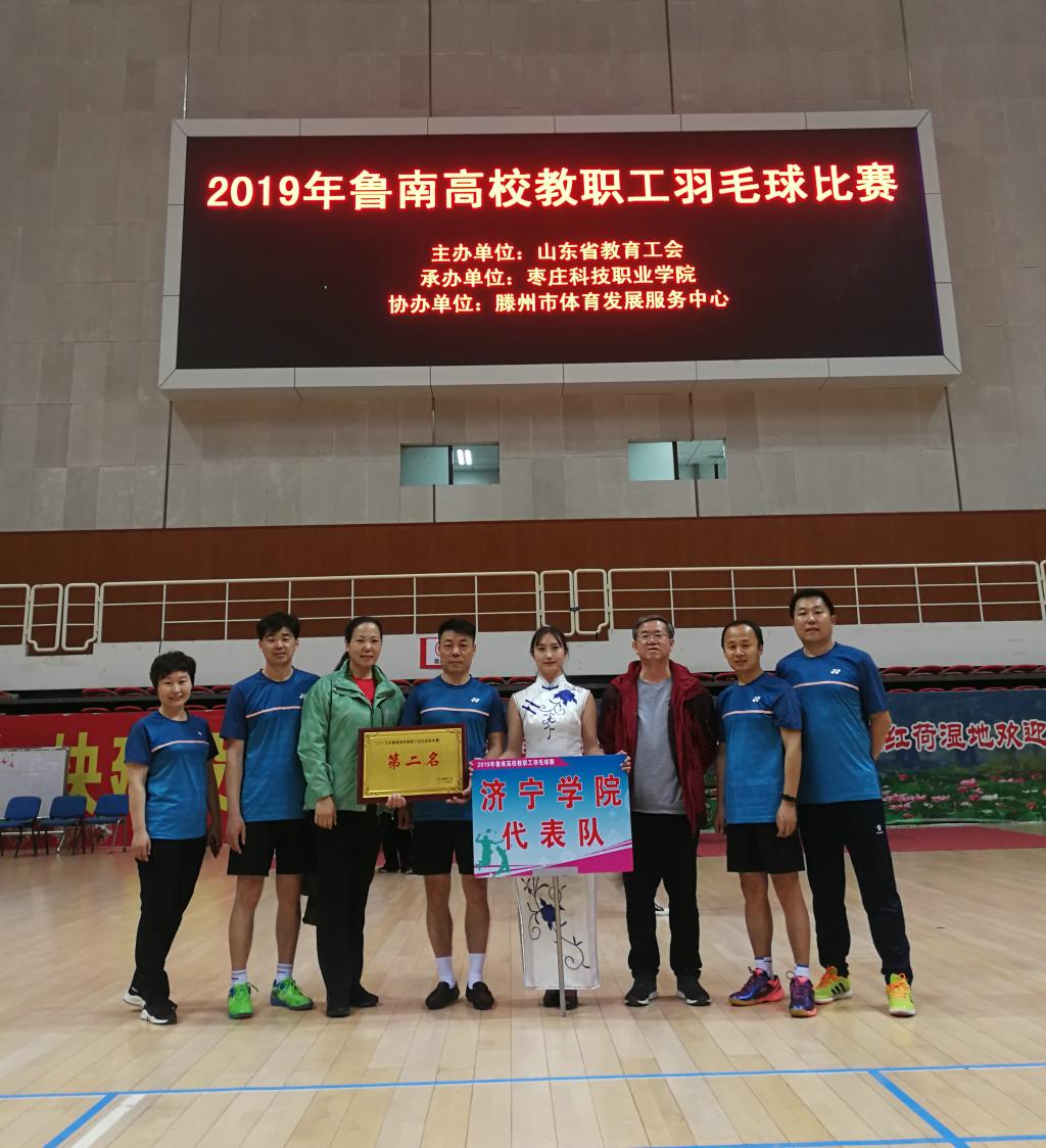 4月20日,我校教职工羽毛球队参加了由山东省教育工会主办、枣庄科技职业学院承办的“鲁南高校教职工羽毛球团体赛”,本次比赛共有来自菏泽、济宁、枣庄、临沂、日照地区的13支高校代表队参赛。经过激烈角逐,我校羽毛球队取得团体第二名的佳绩,充分体现出我校教职工的凝聚力和顽强拼搏的精神。