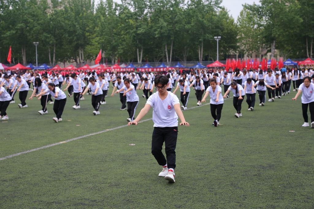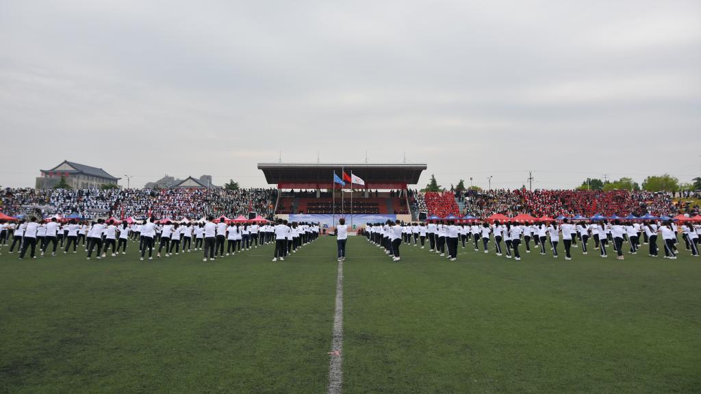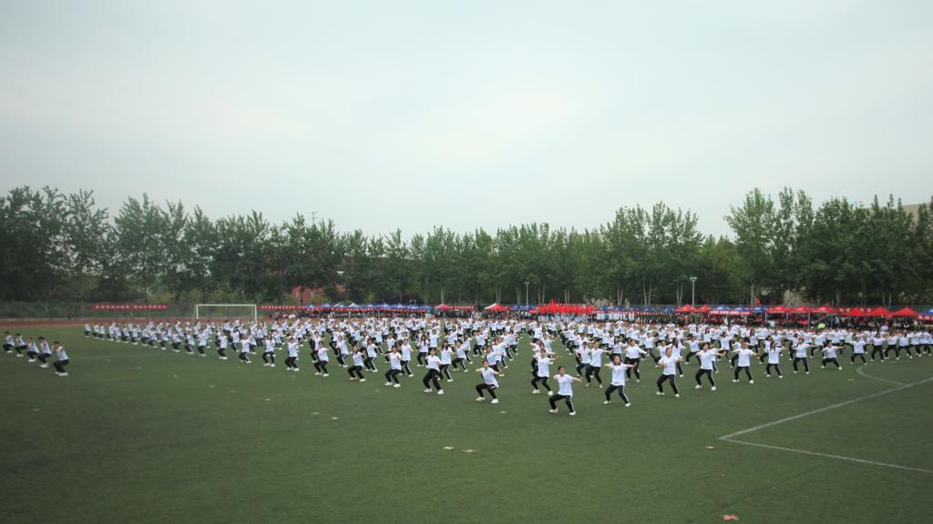 闭幕式前,来自学校13个系的500名师生进行了健身气功八段锦和五禽戏表演。