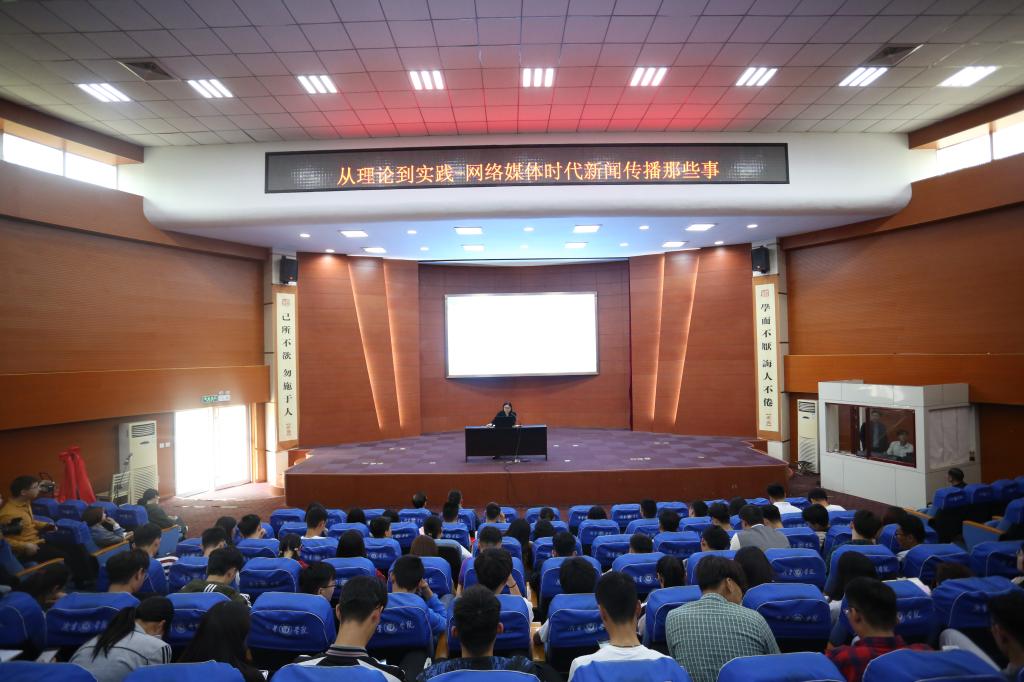 揭牌仪式后,朱仙娉以《从理论到实践——网络媒体时代新闻传播那些事》为主题从新闻体裁、新闻稿写作、新闻图片、新闻属性、新闻采访、新闻视频等方面给学校新闻中心记者们作济宁学院新闻干部培训班辅导报告。