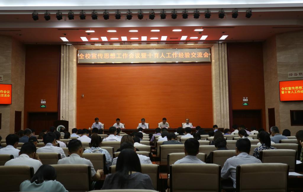 5月28日下午,学校召开宣传思想工作会议暨十育人工作经验交流会。校党委书记郁章玉出席会议并讲话。党委副书记、院长吕灵昌传达了全国全省宣传思想工作会议精神。会议由党委副书记马恩主持。校领导朱松涛、许记中出席会议。部分部门主要负责人,各系(院部)党总支(党委)书记、副书记、主任(院长)、副主任(副院长),全体学生辅导员,马克思主义学院部分教师,受表彰的先进集体、先进个人代表参加了会议。