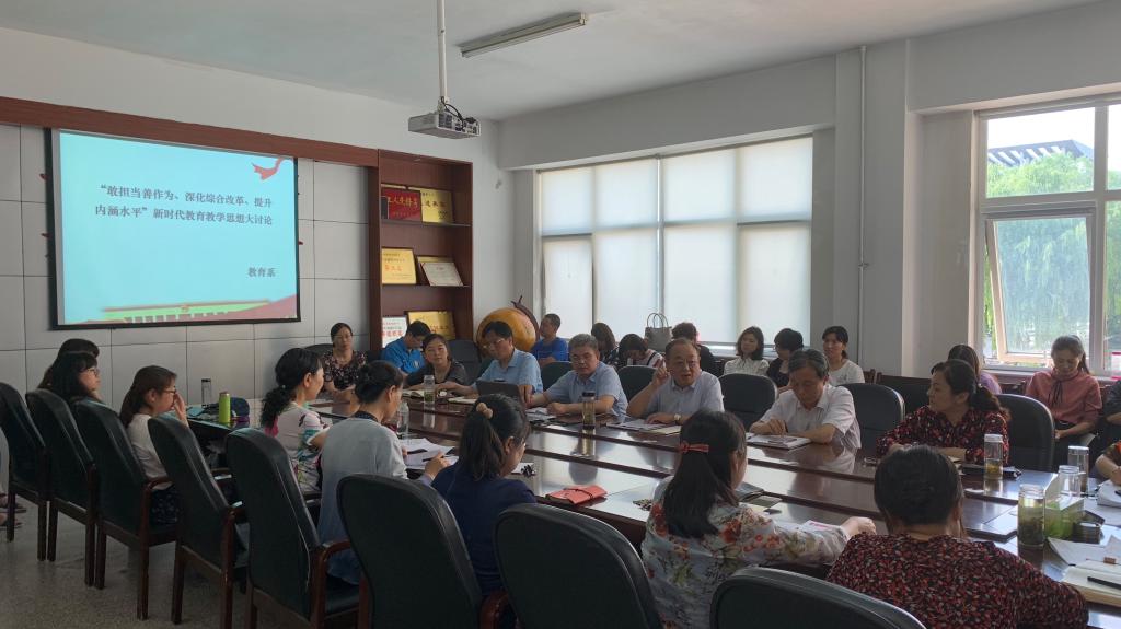 6月6日下午,教育系举行“敢担当善作为、深化综合改革、提升内涵水平”新时代教育教学思想大讨论研讨会。党委委员、副院长朱松涛出席会议并讲话。教育系主任李群主持研讨会,全体教师参加会议。