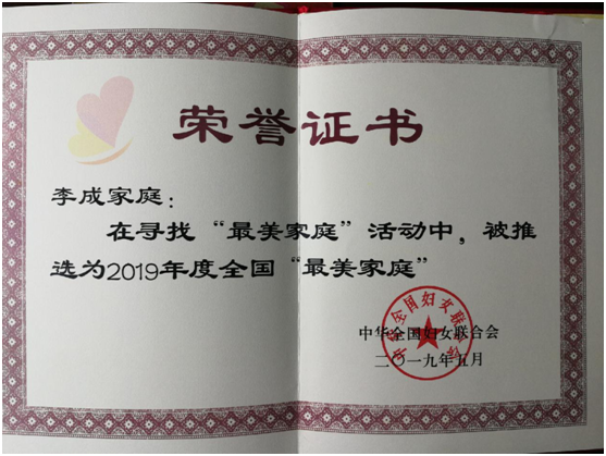 5月15日由全国妇联主办的2019年度全国最美家庭在京揭晓。全国有999户家庭荣获全国最美家庭荣誉称号,山东省40户家庭榜上有名。学校数学系李成家庭当选2019年度全国“最美家庭”。