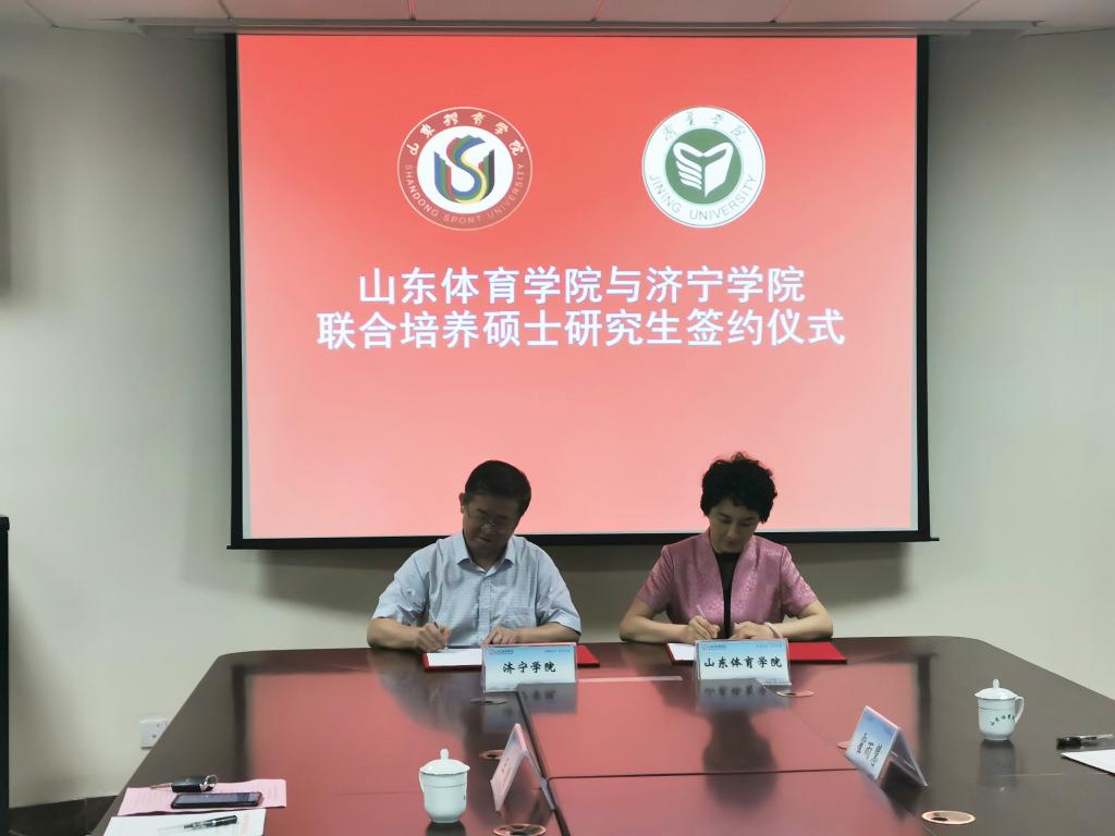 为进一步落实山东省教育厅《关于下达立项(培育)单位联合培养和科教融合校所联培研究生招生计划的通知》(鲁教研处【2019】3号)文件精神,8月3日,我校与山东体育学院签订联合培养硕士研究生协议,签约仪式在山东体育学院(日照校区)举行。校党委委员、副校长刘德胜,山东体育学院副校长毛莉虹出席仪式,并分别代表双方签署协议。山东体育学院研究生教育学院,我校科研处、体育系相关负责人参加仪式。