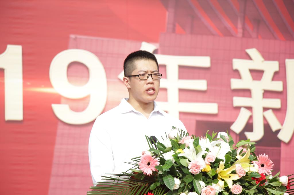 教师代表、经济与管理系张冠甲博士代表全校教师对新同学的到来表示最热烈的欢迎,他希望新同学应当尝试感受学术,发掘问题,学而复思,思而复学,尽可能学会独立思考,逐步尝试着自己解释问题。应充分寻找利用校内外的学习资源,在网上获取丰富的精品课程资源,善加利用,自主学习,不倦探索。要在嘈杂的外部世界中能守护自己内心的宁静。要尽早学会自己做决定,找到成长的方向,并专注于自身的人力资本投资,以积极的心态融入国内竞争甚至全球竞争。最后,他希望同学们勇敢尝试,勇于逐梦,“莫忘初心,莫负青春”,做到青春无悔。