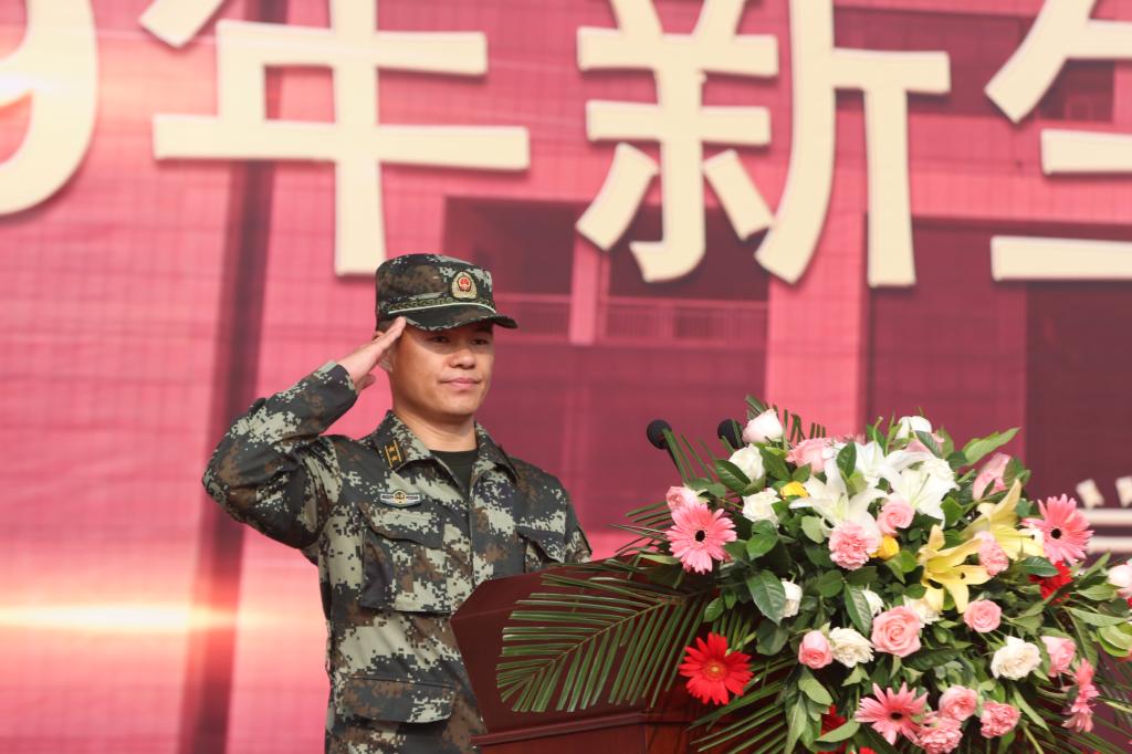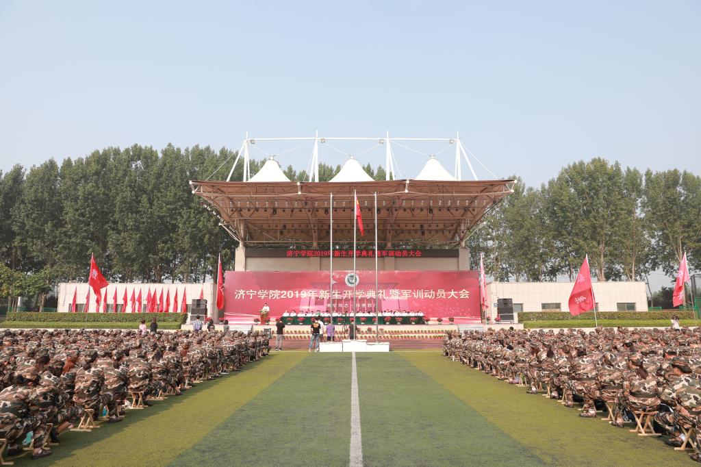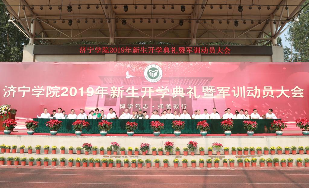 武警济宁支队的承训官兵,学校各系(院)、各部门的主要负责同志和新生家长代表、教师代表,2019级全体同学参加了大会。