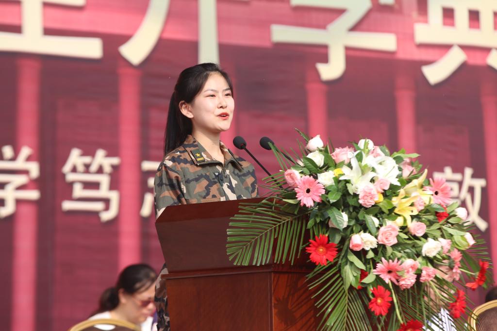 张吉亮同志代表承训部队致辞,希望同学们要认清军训的重要意义,珍惜军训的宝贵机会,进一步增强国防观念,继承军人的优良传统和作风,严格要求,刻苦训练,磨炼顽强拼搏的意志,学会服从、严以律己,学会吃苦、敢于吃苦,学会适应、照顾自己。希望教官们科学组训、文明施训、谦虚好学,和同学们相互尊重,互相学习,通力合作,高标准完成军训任务,以优异的成绩向学校领导汇报。