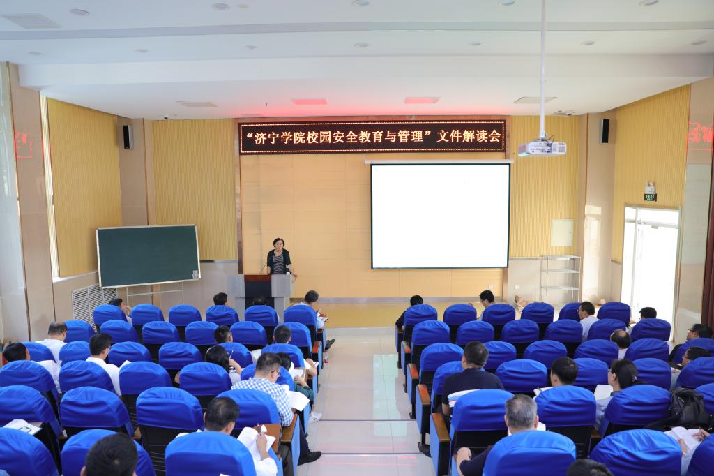 会上,夏可树简要介绍了《济宁学院校园安全教育与管理办法》等九个文件制定的背景和意义。随后,安全保卫处、后勤处、实验教学管理中心、学生工作处、信息管理中心等部门先后对所起草的文件进行了详细解读。