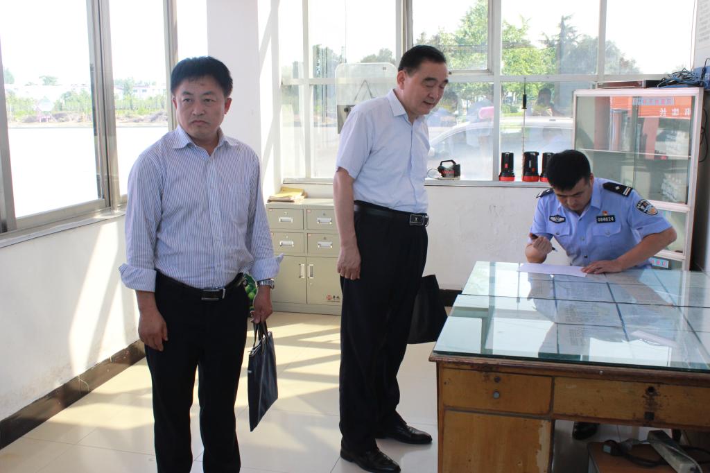 李忠玉一行首先对学校南门保安值班室消防器材、防暴器械、值班巡查记录、校园门禁系统进行了认真检查,并向安全保卫处及驻校警务室有关人员详细了解了学校监控室建设情况、校园安全隐患排查整治情况。