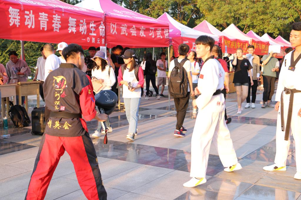 各学生社团各出奇招,在指定区域设点摆放宣传展板,悬挂招新横幅,展示作品,现场讲解,纷纷亮出自己的纳新“法宝”。瀚墨书画社的同学现场挥笔泼墨,机器人协会展示了自行设计制作的智能行李箱,圣地行歌协会则在现场自弹自唱,将舞台搬到了纳新现场。武术协会、轮滑协会、街舞协会等社团进行精彩地现场展示,吸引了大批新生的关注。整个纳新现场人潮涌动、气氛活跃,新生们踊跃参与、竞相报名。