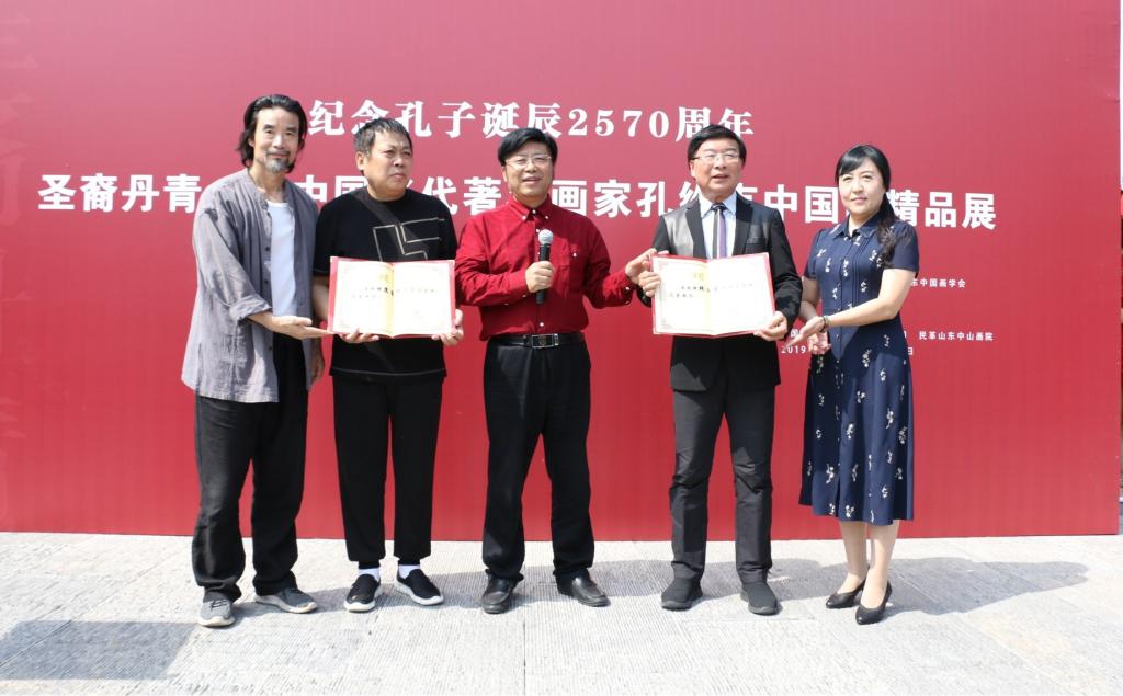 9月25日,“纪念孔子诞辰2570年·圣裔丹青——中国当代著名画家孔维克中国画精品展”在曲阜“四氏学”盛大开幕,校党委委员、副院长王旭英,党委(院长)办公室负责同志,美术系师生代表130余人参加。