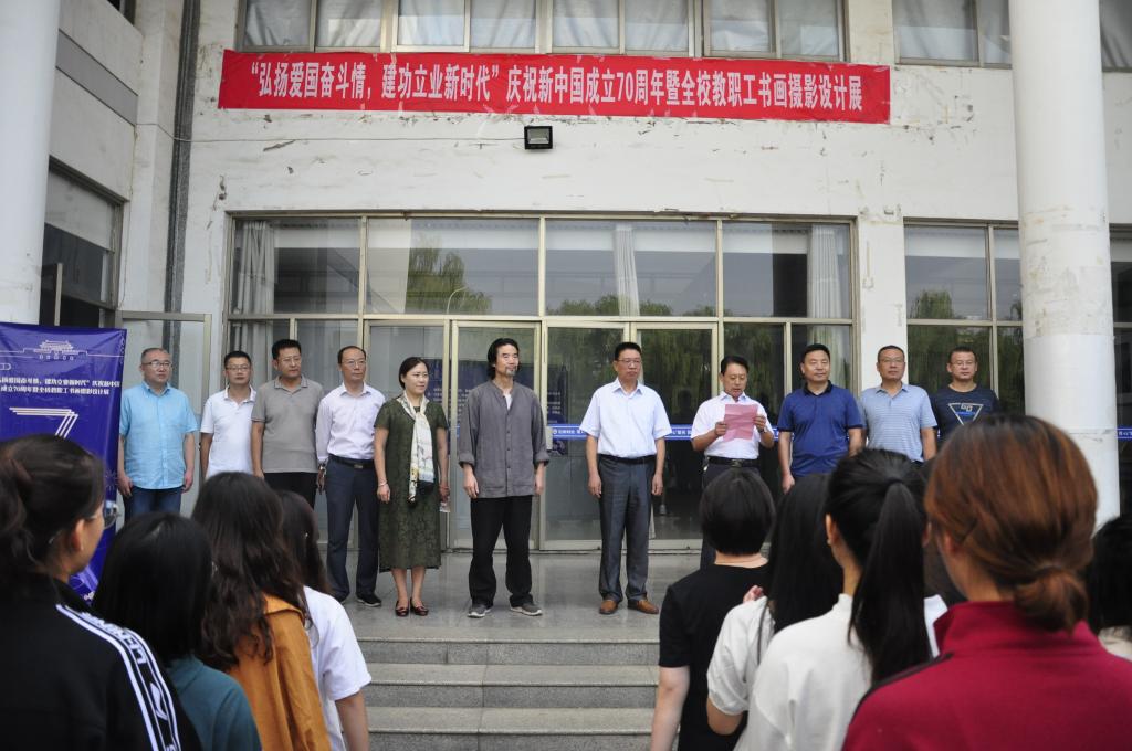9月27日上午,由校工会(妇委会)主办,美术系承办的“学校庆祝中华人民共和国成立70周年教职工书画设计摄影展”在美术系展厅开幕。校党委副书记马恩出席并致辞,校工会(妇委会)、各部门分工会负责同志,美术系师生近200人参加活动。开幕式由校工会主席史仍洲主持。