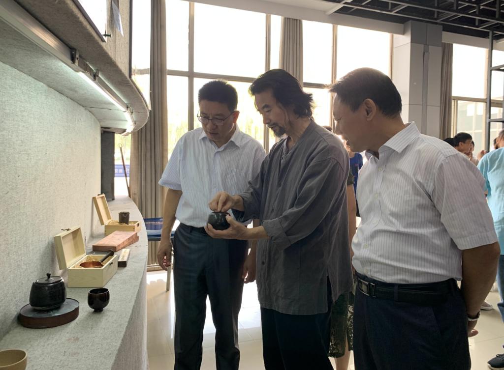 开幕式结束后,与会领导和师生一起参观了展览。褚滨教授就展览准备、作品创作思路、表现形式等作详细导览。