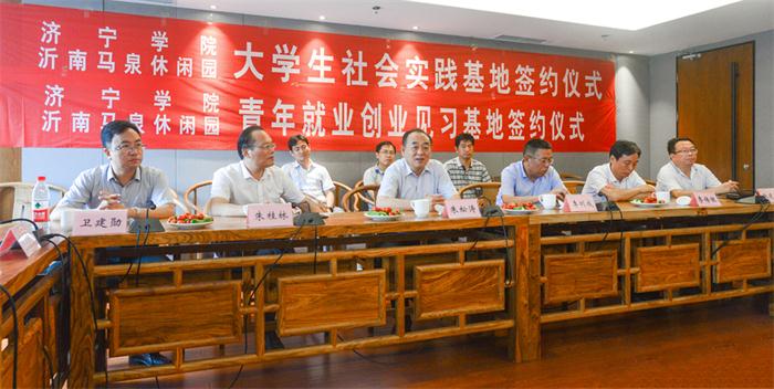 8月5日上午,我校与沂南县马泉创意农业休闲园,共建实践教学基地、大学生社会实践基地、青年就业创业见习基地签字仪式,在沂南县马泉创意农业休闲园会议室举行。学校党委委员、副院长朱松涛,沂南县铜井镇党委书记高晓龙,出席签字仪式。仪式由高晓龙主持。