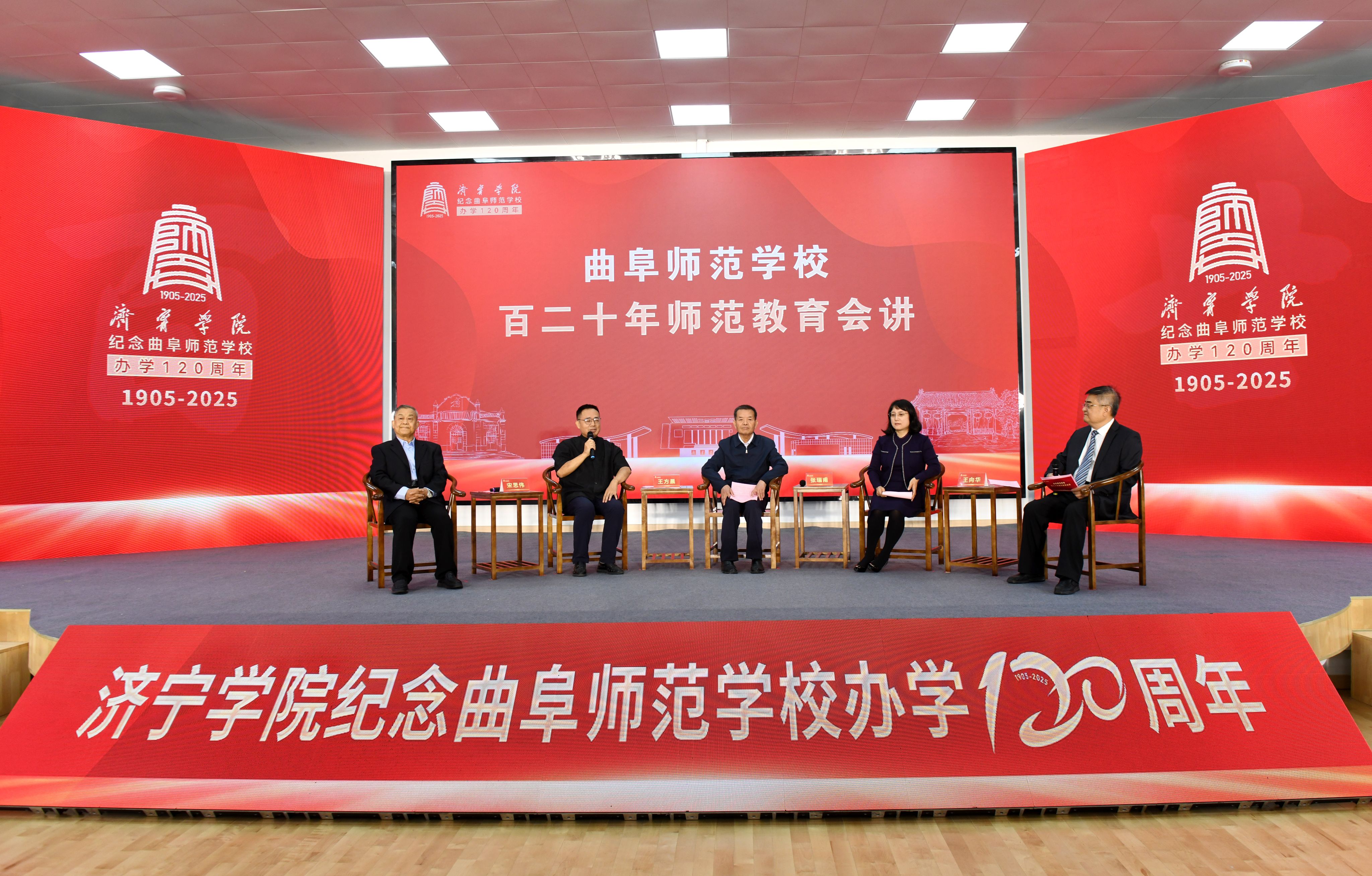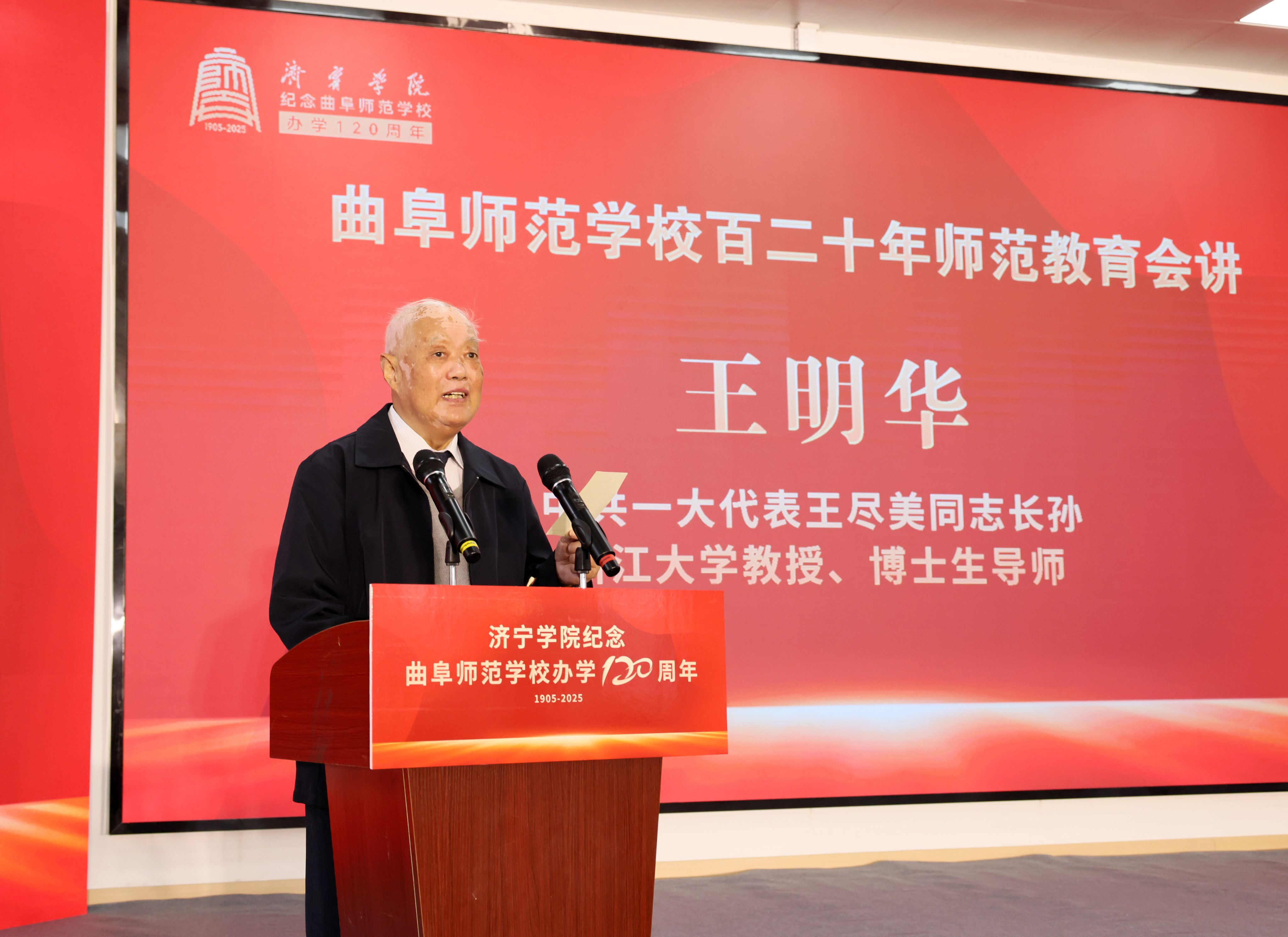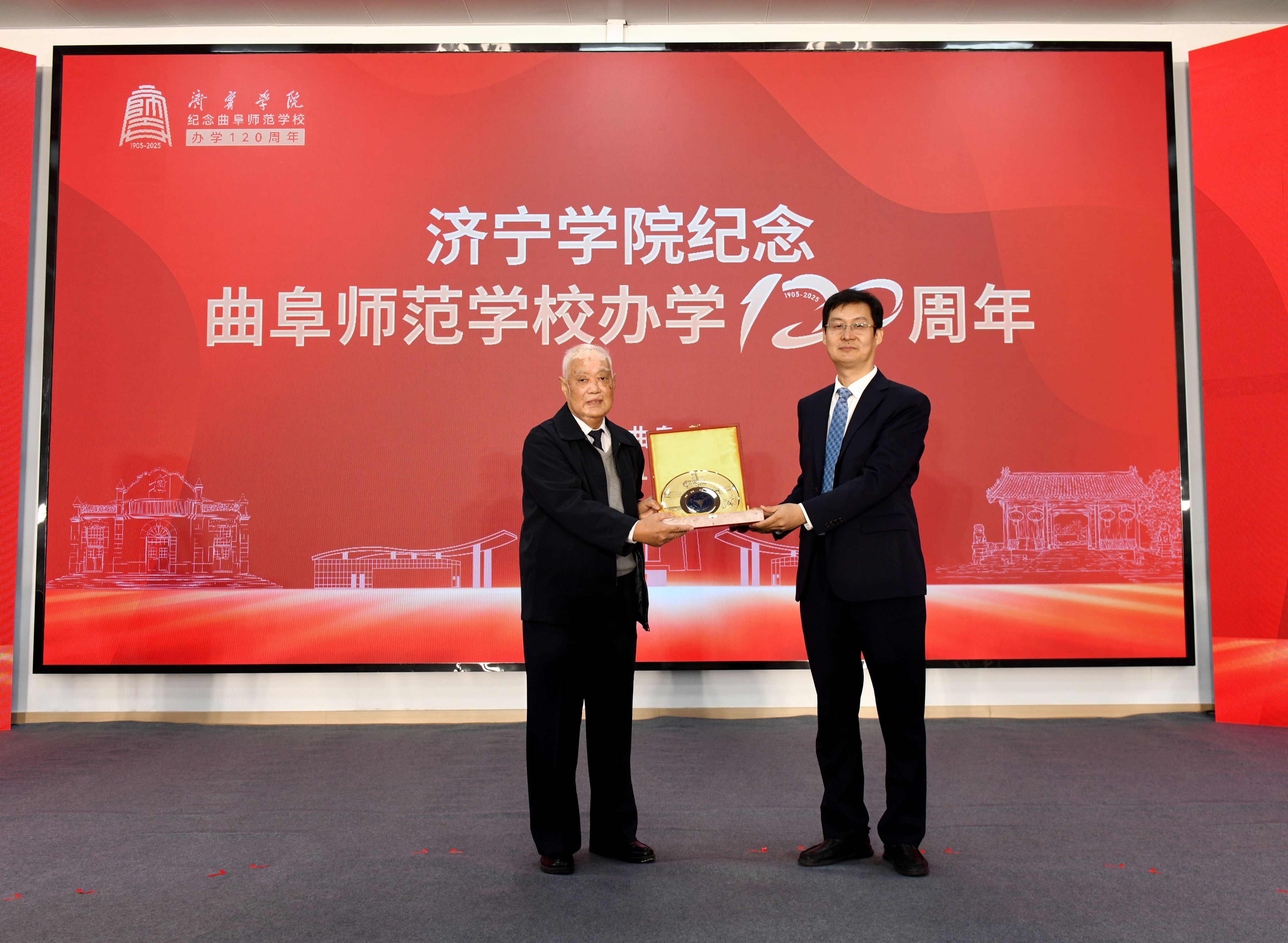 10月11日上午,我校隆重举办纪念曲阜师范学校办学120周年活动“曲阜师范学校百二十年师范教育会讲”。孔子第七十九代嫡长孙、济宁学院名誉院长孔垂长,著名作家、中国传记文学学会名誉会长、济宁学院特聘教授、万里委员长长子万伯翱,浙江大学教授、博士生导师、中共一大代表王尽美同志长孙王明华,曲阜师范大学党委书记邢光,省委台办副主任、一级巡视员王清玉,我校校友、山东省文联副主席王方晨,我校校友、曲阜市委副书记王庆明,我校校友、曲阜师范大学二级教授、全国模范教师、国务院政府特殊津贴专家张瑞甫,我校校友、山东师范大学教育学部教育系主任、教授、博士生导师王向华,我校校友、中国成人教育协会副秘书长、上海市中华职教社老年专委会主任费秀壮,济宁学院党委副书记、校长王清明,学校领导李凡路、尹春光、赵明、孔繁润、刘国栋、张永强、刘克非以及校友、师生代表和社会各界人士等欢聚一堂。活动由济宁学院党委副书记丰家雷主持。