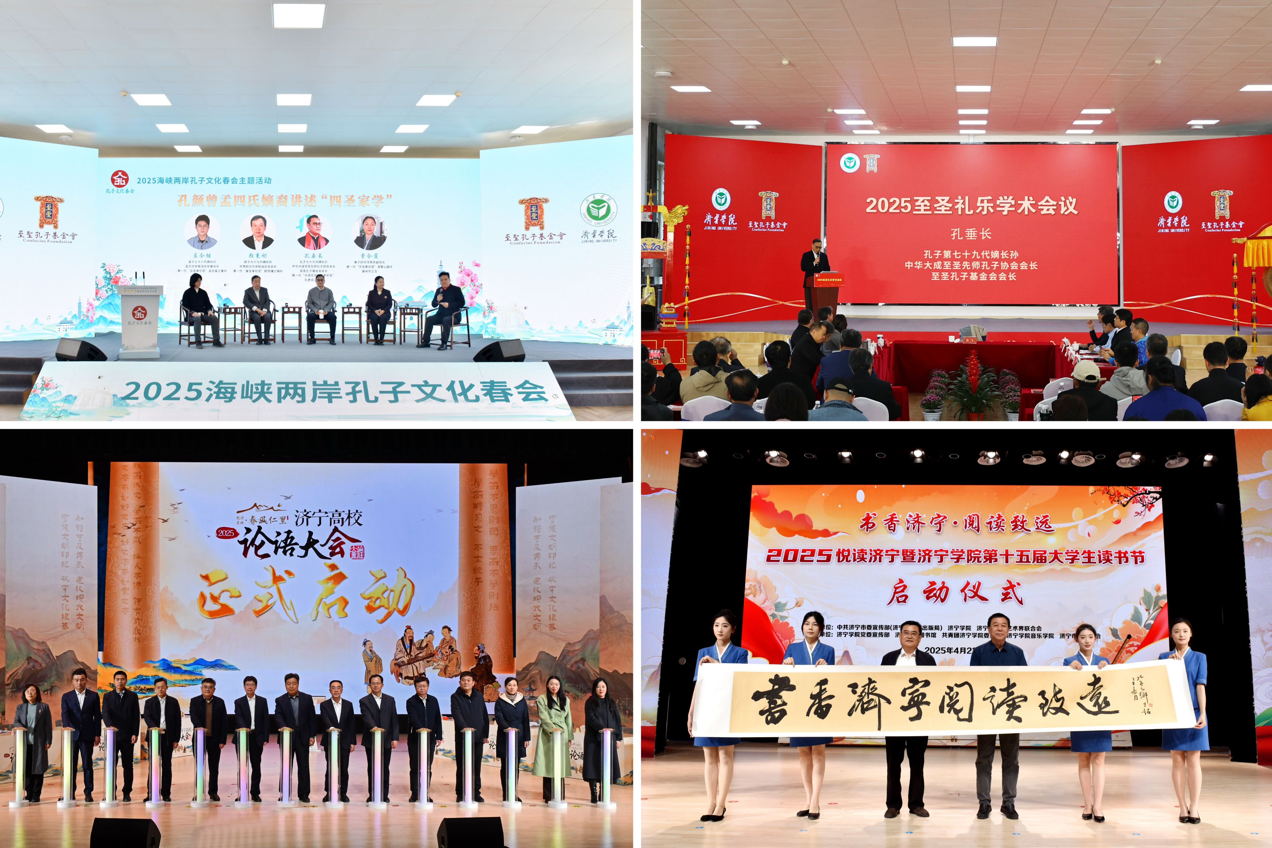 坚持以文化人、以文育人,将儒家文化元素深度融入校园环境建设、文化活动开展和师生行为养成,打造特色文化育人品牌。举办2025海峡两岸孔子文化春会系列活动,央视新闻对活动进行了报道。举办纪念曲阜师范学校办学120周年系列活动,孔子79代嫡长孙、至圣孔子基金会会长、学校名誉校长孔垂长先生,第七届全国人大常委会委员长万里长子万伯翱先生,中共一大代表王尽美烈士长孙王明华教授等众多知名人士和专家学者应邀出席,共忆120年师范教育历程、共话未来发展。举办2025至圣礼乐学术会议,汇聚国内外知名专家学者深化礼乐文化研究交流。举办2025济宁高校论语大会,济宁八所高校学子同台竞技,演绎经典。承办“书香济宁·阅读致远”2025悦读济宁活动启动仪式,举办第十五届大学生读书节。孔子学堂举办大学生国学经典诵读班2期。在2025年山东省中华经典诵读大赛中,学校获一等奖3项、二等奖2项、三等奖3项、优秀奖1项。选派367名志愿者参与国际孔子文化节祭孔大典演出及志愿服务,获执委会与导演组一致好评。
